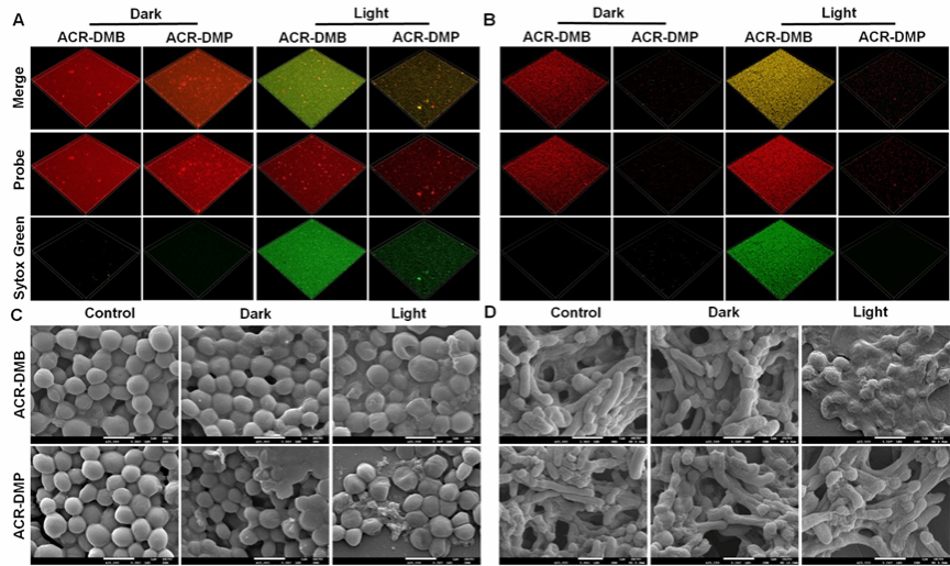 图6.光敏剂体外抗生物膜成像与形貌表征