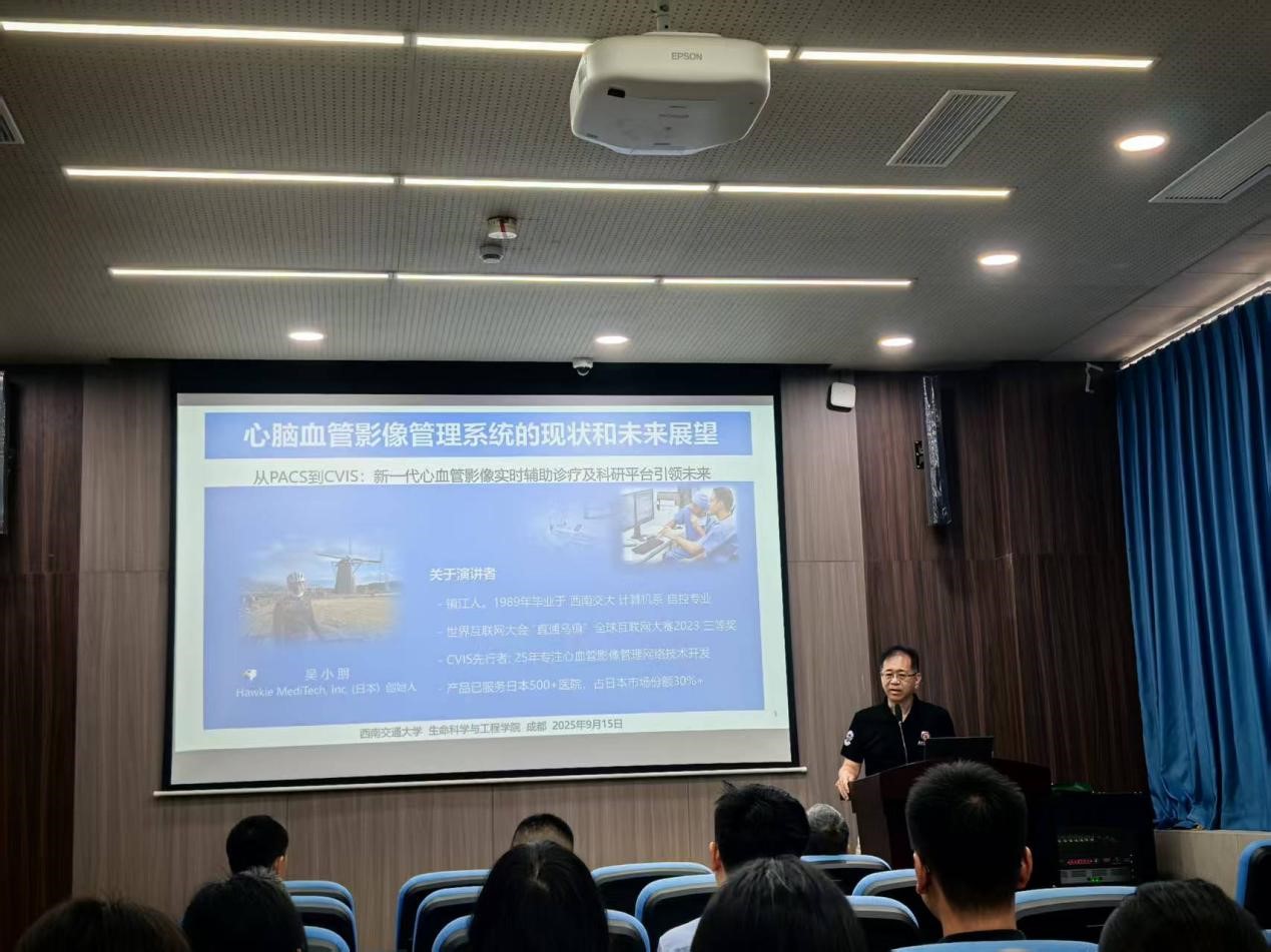 创源大讲堂研究生学术讲座在工业中心C103会议室举行。本次讲座主题为“心脑血管影像管理系统的现状和未来展望”,特邀心血管影像信息系统资深专家、Hawkie MediTech, Inc.创始人兼CEO、我校1985届校友吴小朋先生担任主讲。基于其25年的行业经验,他为师生带来了一场深度与前瞻性并存的学术分享。
