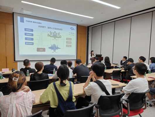 师生表示热烈欢迎。交流会上,盛迪医药行政经理姚佳向同学们介绍了恒瑞医药与成都盛迪医药的微密圈、业务平台、发展历史、荣誉成果等。随后,人力资源部经理陈兰丽与研发合成部部长薛州洋分别和同学们进行了交流。