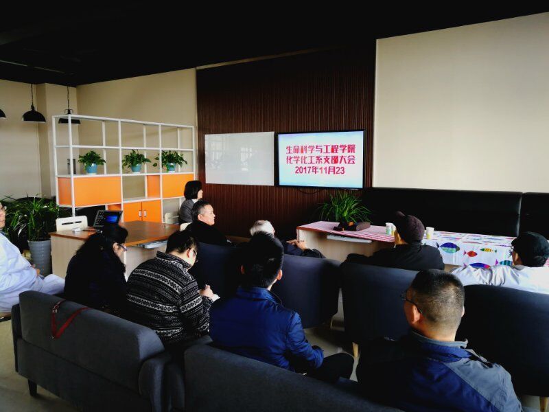 化学化工系教工党支部在X6423召开 “十九大”精神专题学习会议”。会议由化工系支部书记王萃娟主持、学院任平弟书记做总结发言,党支部全体党员参加了会议。