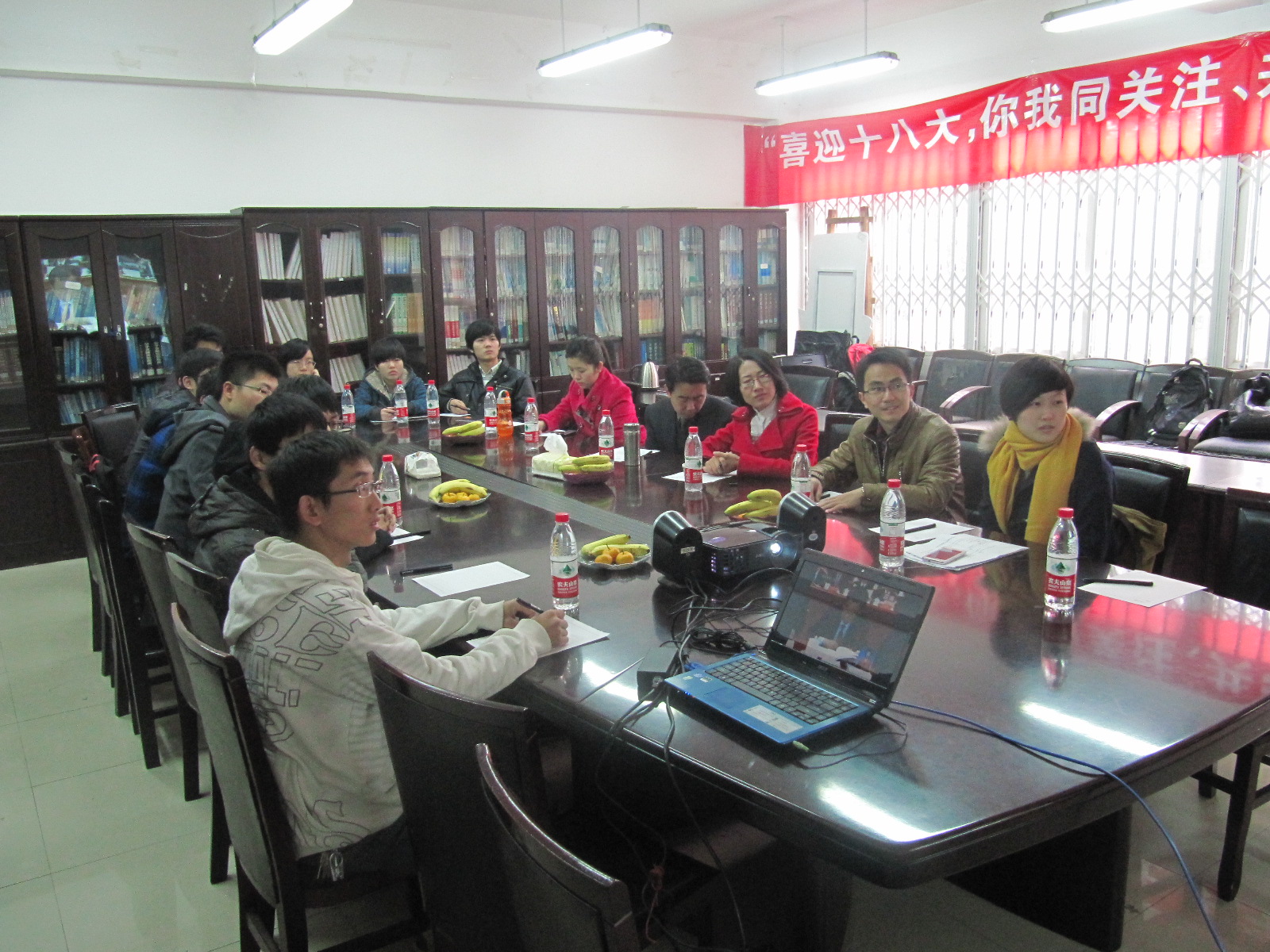转播结束后,与会人员进行了座谈。大家纷纷表示,十八大报告高屋建瓴、总揽全局,是解放思想、实事求是、与时俱进的报告,反映了时代发展要求,体现了人民热切期盼,是中国共产党面向世界、面向未来的政治宣言,是对马克思主义中国化成果的丰富和发展,是引领中华民族走向伟大复兴的旗帜。同时,与会人员还结合自己的工作畅谈了在夯实党支部建设、促进青年学子就业、营造良好的创新氛围、倡导志愿服务、拓展学生综合素质等方面的思考和计划。