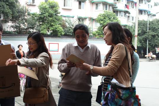 实验中心教工党支部、生物工程系教工党支部党员代表和九里堤北路社区党委副书记廖志霞、社区居委会委员夏红主任一同来到九里提北路社区博爱书屋。博爱书屋是九里堤北路社区残疾人的活动中心,主要作用是为残疾人提供读书学习的地方以丰富他们的日常生活。