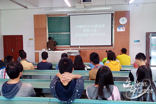 2013级生工一班于X2418召开“推优入党”团支部民主评议会议。参加本次民主评议会议的为2013级生工一班全体同学。本次会议由团支书黄国强主持。