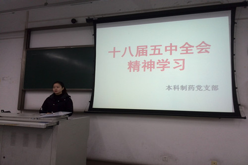 11月27日19:30,本科制药党支部全体成员于X2525对党内文件进行了集中学习。 首先,支部成员通过对《中共中央关于制定国民经济和社会发展第十三个五年规划的建议》的学习,明确了“十三五”时期的重要性,并针对这一全面建成小康社会的决胜阶段进行发言,就大学生应做出何种努力畅所欲言。接下来,成员们学习了《微密圈