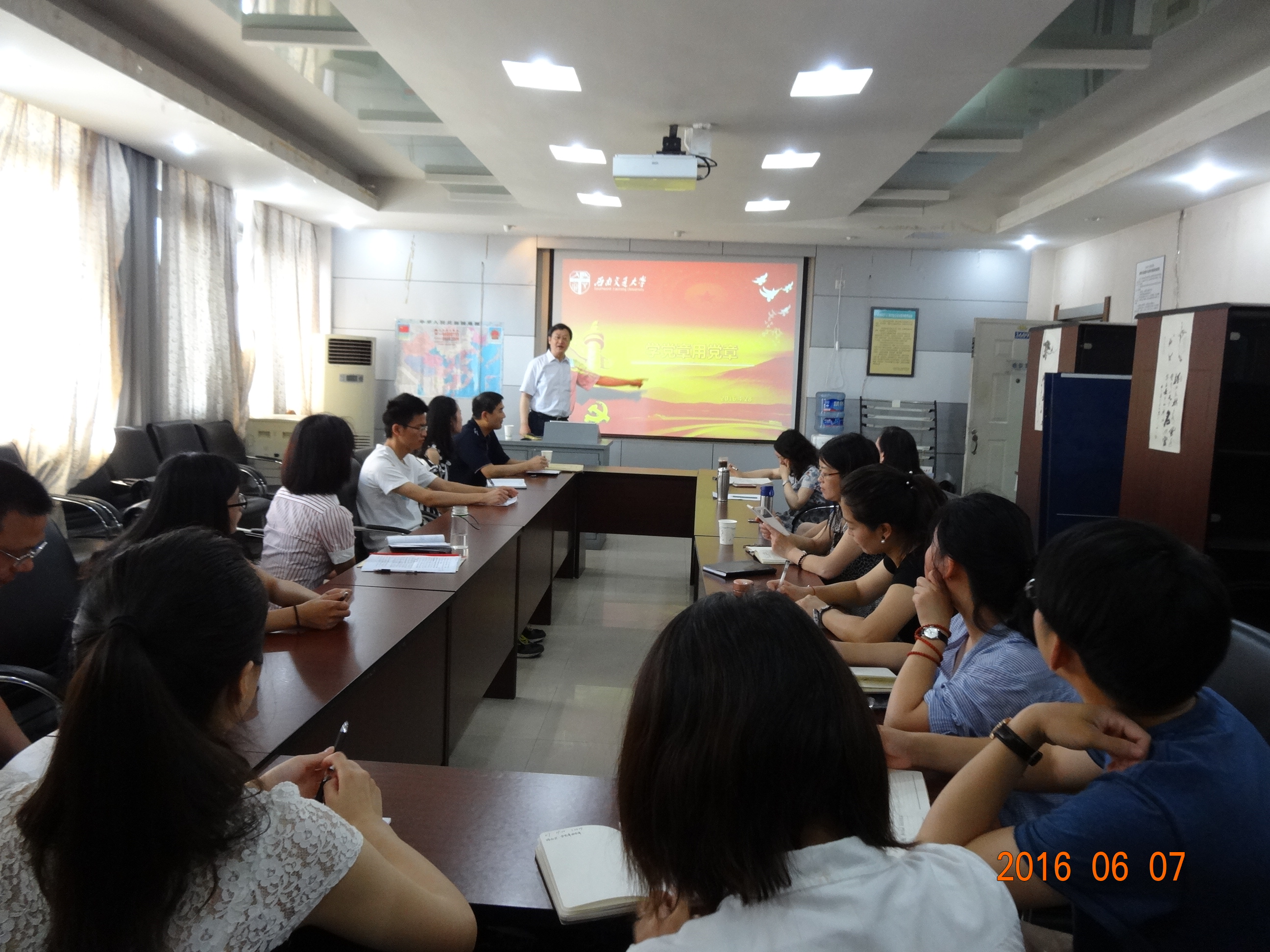 “两学一做”中心组学习扩大会议在3609召开,会议由院党委书记李卓慧主持,学院班子成员、党委委员、各党支部书记、各系主任中的党员、学生支部指导老师等参加了会议。会议特别邀请到校党委副书记、纪委书记陈志坚出席并讲党课。