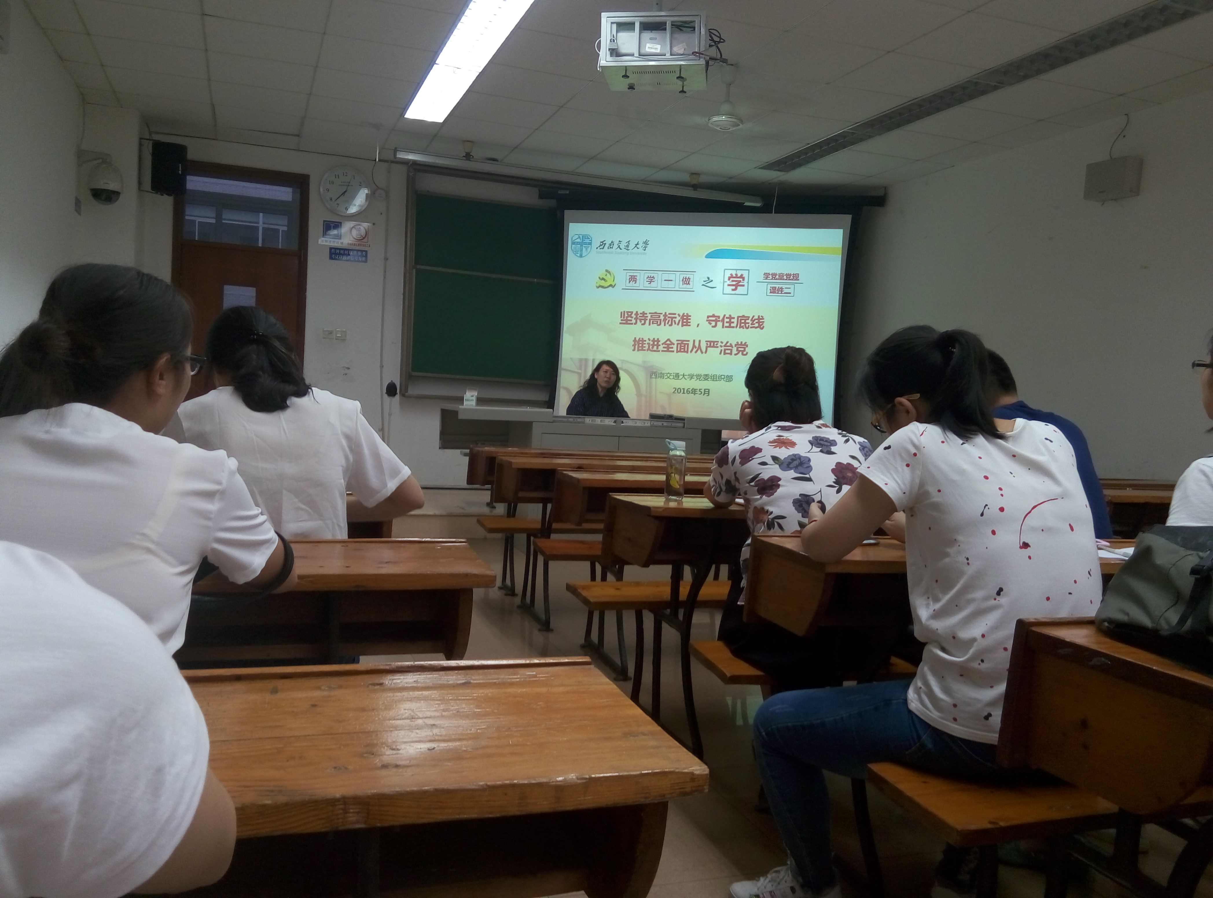 本次学习的主题是“学条例、讲规矩、有纪律”。首先,由支部指导老师、学院党委委员贺妍老师为我们上党课——《坚持高标准,守住底线,推进全面从严治党》,重点讲解了《中国共产党廉洁自律准则》(《准则》)和《中国共产党纪律处分条例》(《条例》)的主要内容、修订《准则》和《条例》的重要意义和基本原则、《准则》和《条例》的精神实质以及相关事例的解读及运用等。通过贺老师的讲解,全体党员更加明确了“两学一做”的对象是全体党员,修订《准则》和《条例》是全面从严治党的重要举措、是党内法规与时俱进的重要体现、是依规管党治党的重要任务以及管党治党实践发展的重要成果。《准则》和《条例》的修订坚持以党章为根本遵循、用严明的纪律维护党章权威、坚持问题导向,把严守政治纪律和政治规矩摆在首位,坚持纪严于法、纪在法前,实现纪法分开,坚持高标准和守底线相结合的基本原则等深刻内涵。全体党员必须坚定共产主义理想和中国特色社会主义信念,坚持全心全意为人民服务根本宗旨,继承发扬党的优良传统和作风,时时处处以《准则》的高标准严格要求自己,以《条例》的底线要求警醒自己,自觉培养高尚道德情操,做合格共产党员。