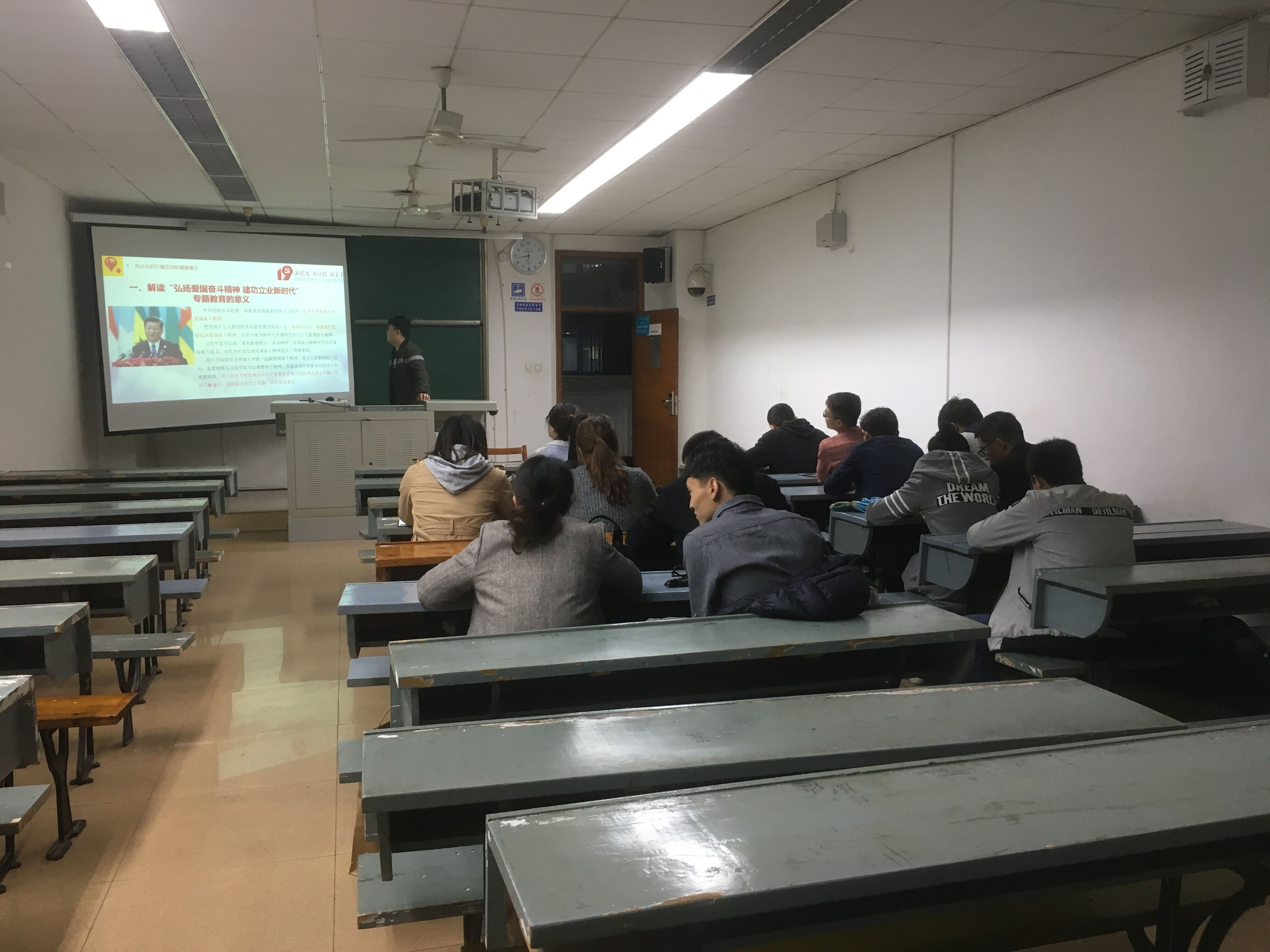 随后,韦乐华同志通过列举两个优秀爱国知识分子典型案例,使大家进一步深入了解爱国奋斗精神的实质和意义。他介绍了作为“两弹一星”功勋奖章获得者的钱学森,数十年呕心沥血、攻坚克难,带领他的团队为新中国造出第一枚具有划时代意义的导弹“东风一号”,为了祖国的航天事业作出了彪炳史册的贡献。钱学森作为中华民族知识分子的典范,他的自立自强和爱国奉献精神,鼓舞了无数中国人,也凝聚成了中国航天事业发展的磅礴力量。还有负责“中国天眼FAST工程”的南仁东(500米口径球面射电望远镜被誉为“中国天眼”),将自己的知识和生命中近1/3的时光都奉献给了FAST,正式因为他这种勤奋刻苦、踏踏实实地“做点事情”这种精神,才使我国在天文方面达到世界领先水平。他指出,正是有无数的爱国知识分子默默地为祖国建设奉献自己,中华民族才能日益强大,才能走向全面小康社会。