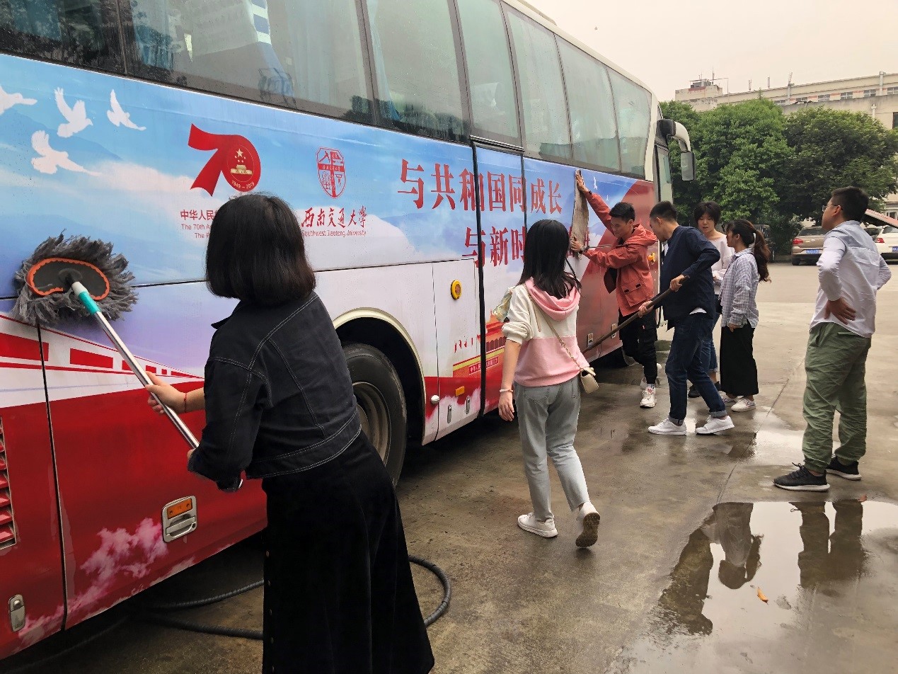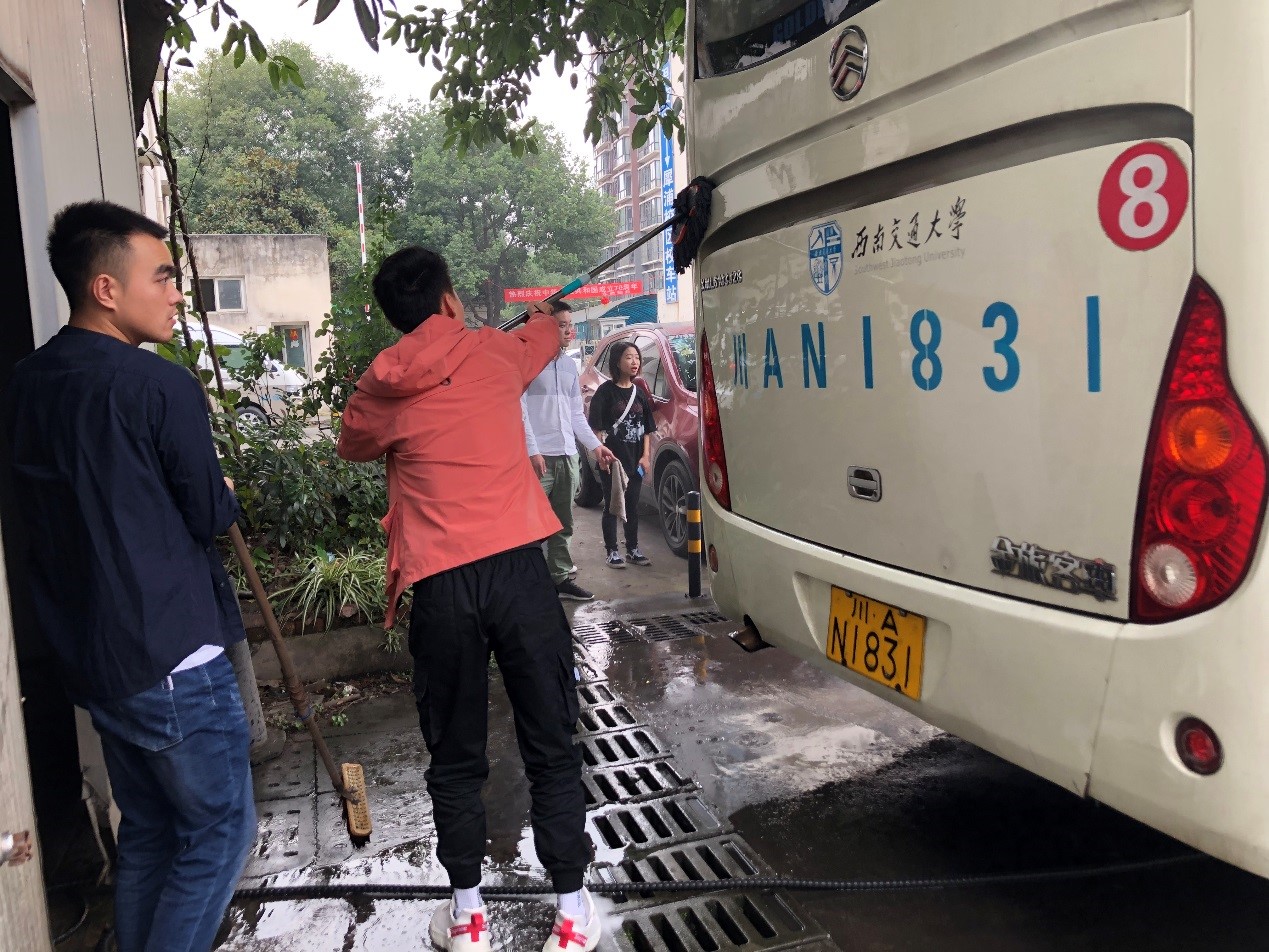 九里校区校车站开展了以“清洁校车行 温暖师生心”为主题的社会实践活动。活动由2018级党支部书记王珏同志主持,支部的党员和积极分子都参加了活动。
