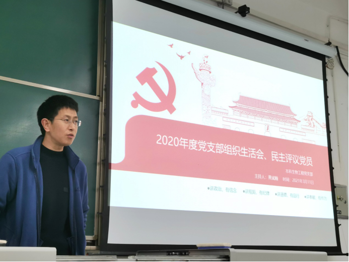 为深入学习贯彻习近平新时代中国特色社会主义思想和习近平总书记关于教育的重要论述,2021年3月11日下午,本科生物工程党支部2020年度组织生活会及民主评议党员于X2232进行,会议由党支部书记黄斌翰主持。学院党委副书记赵钢锋同志和孔琳老师出席会议。