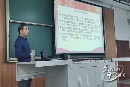 党委书记葛永明、副书记赵钢锋、党委委员闫智勇、生物工程系党支部书记孟涛主讲。