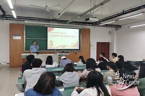 刘占祥书记以“中国共产党的指导思想”为题,逐一讲授了马克思主义、毛泽东思想、邓小平理论、“三个代表”重要思想、科学发展观以及习近平新时代中国特色社会主义思想,并解释了“新时代”的定义。我们要对社会主义祖国和人民充满热爱,信仰和坚持马克思主义科学真理,愿意全心全意为人民服务,在建设中国特色社会主义、实现中华民族伟大复兴、服务祖国的过程中实现人生价值,积极学习科学文化知识和共产主义的理论,不断从思想上丰富提高自己,坚定为共产主义奋斗的信念。我们要弘扬茅以升、竺可桢、陈能宽等杰出校友的爱国精神,做一名优秀的共产党人,为民族复兴中国梦而努力奋斗。