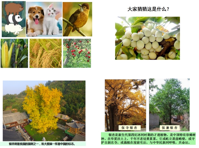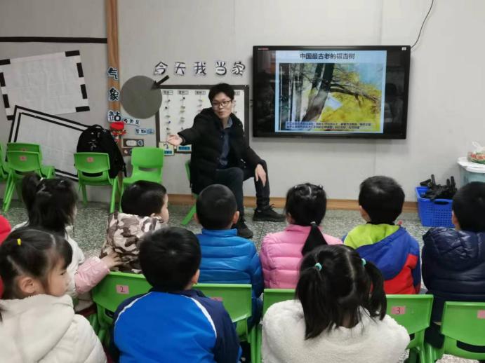 首先,朱乾坤老师告诉小朋友们银杏为中国所特有,世界上其他地方的银杏都来自中国,银杏树是我们国家的国树之一,和大熊猫一样是我们国家的标志之一。接着朱乾坤老师还介绍了银杏的基本科学知识,银杏又叫白果、公孙树、千扇树,银杏是一种非常古老的植物,在一亿七千万年前与恐龙同在,后于第四冰川期濒临灭绝,独在浙江天目山幸存,后传到中国其他地方乃至全世界等相关的知识。