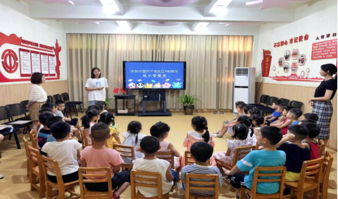 到达幼儿园后,通过与幼儿园园长沟通交流,由幼儿园老师引导小朋友们集中到教室进行党史教育。微密圈