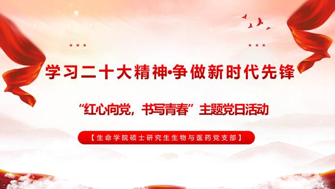 硕士研究生生物与医药党支部组织开展了以“红心向党,书写青春”为主题的党支部特色活动。此次活动进一步推动“学习型”与“创新型”并行的党支部建设,将青春抱负切实融入全面建设社会主义现代化国家、实现中华民族伟大复兴而奋斗的伟大事业中。
