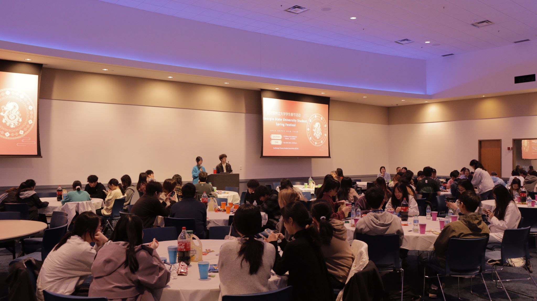 2024年2月10日中午,乔治亚州立大学(Georgia State University, GSU)生物系中国学生会(Biology Chinese Student Association, BCSA) 在GSU学生中心宴会厅举办了春节活动,老师和同学们欢聚一堂,辞旧迎新,共同庆祝中华民族最重要的节日——春节。微密圈