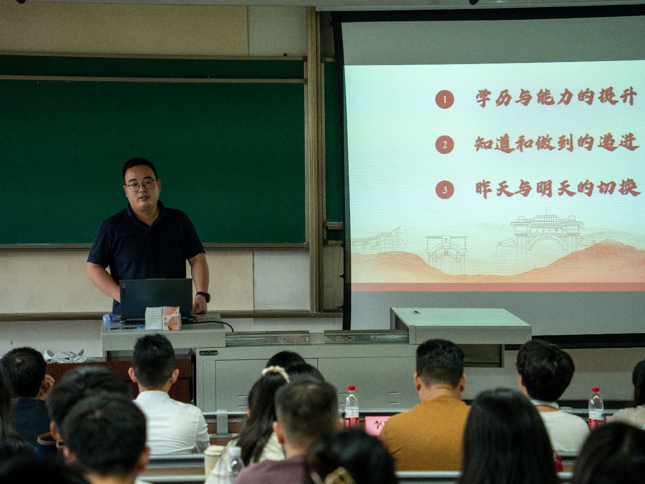 青年讲师团成员、研究生辅导员李麒麟老师为新生班团干部们带来了一场生动的培训讲座。李老师以新时代学生干部应具备的基本素养为切入点,深入浅出地阐述了学生干部在学风建设中的重要作用和职责使命。他强调,作为班级和科研团队的领头羊,班团干部应当具备高度的责任感、使命感和创新能力,勇于担当、敢于作为,充分发挥“自我教育、自我管理、自我服务”的积极作用,引领班级成员共同成长进步。
