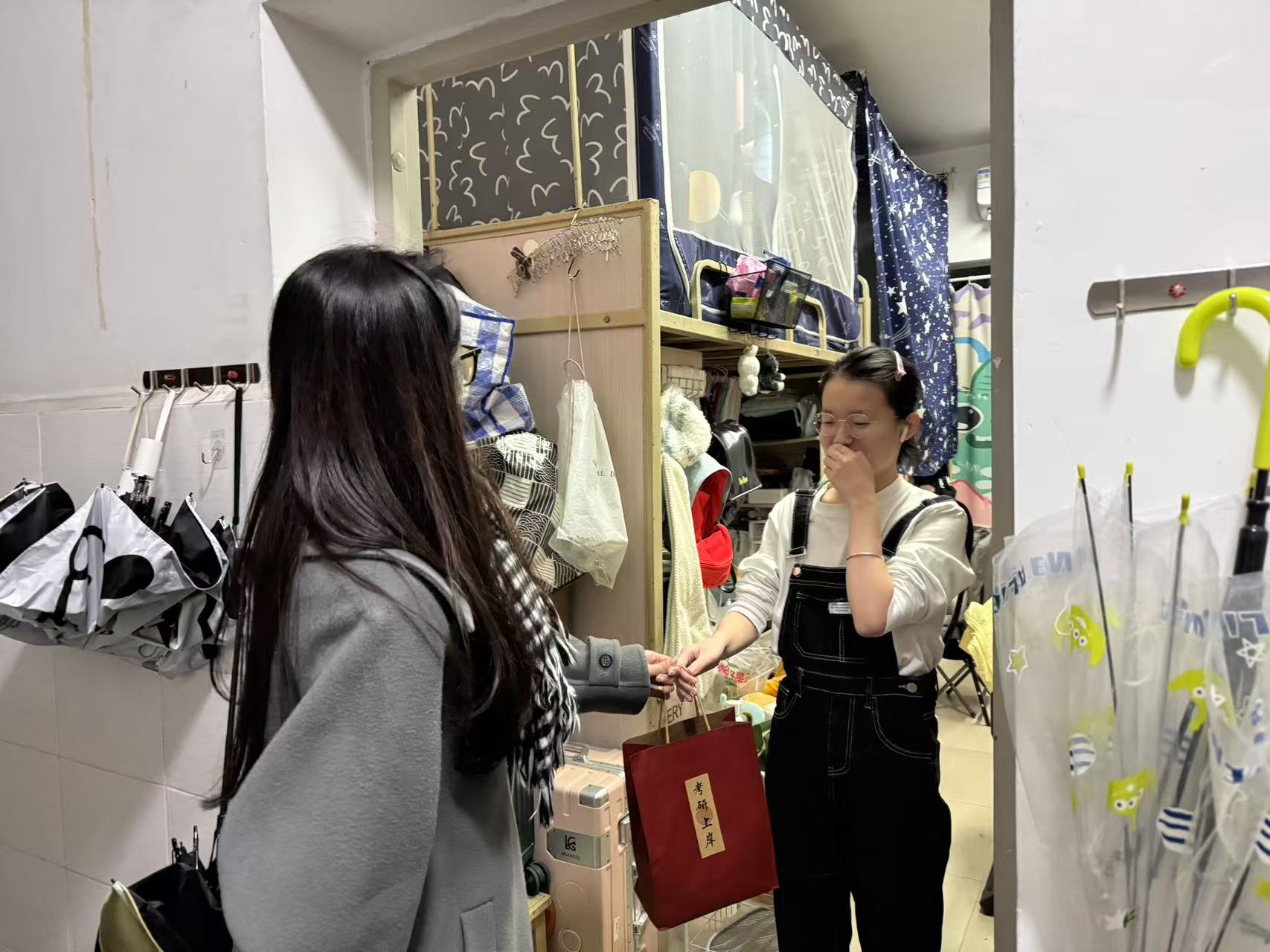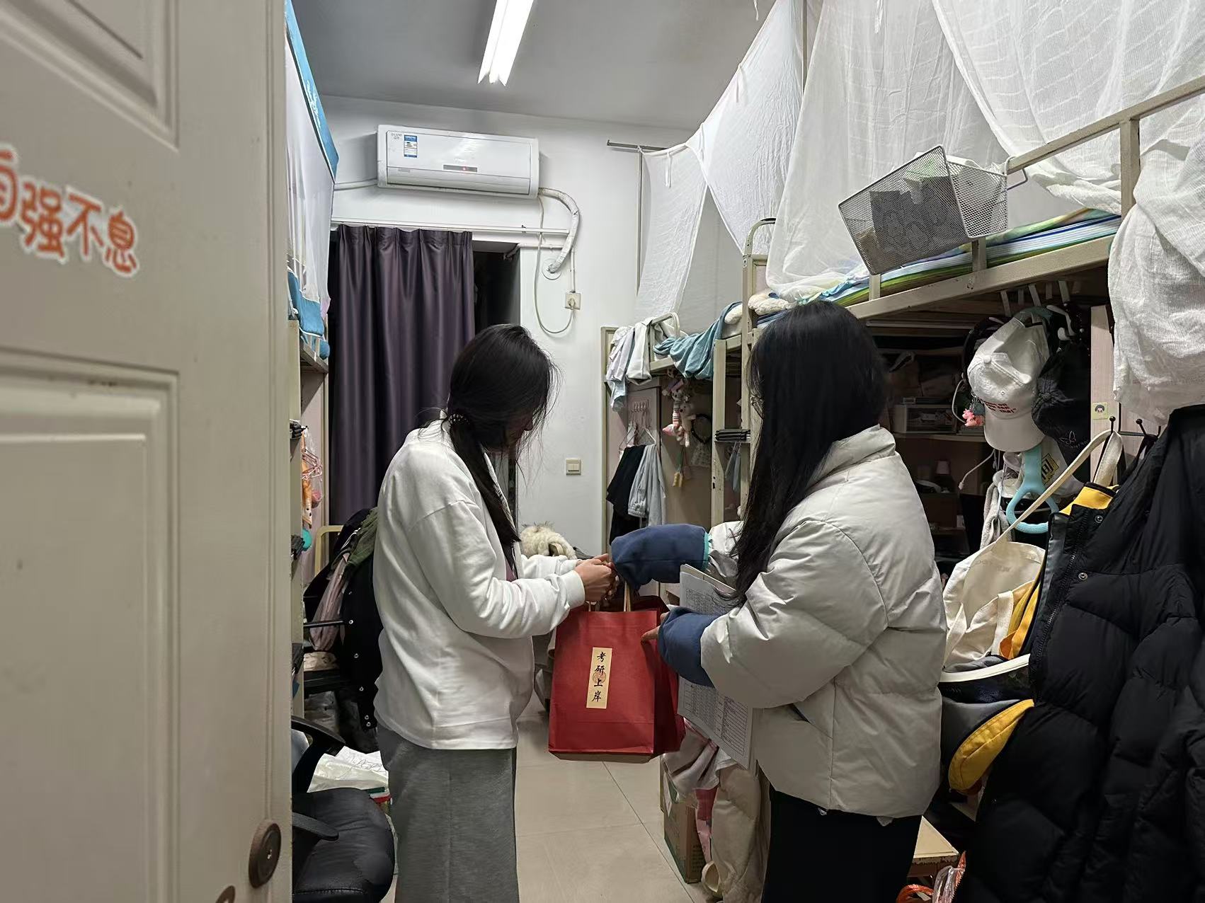 12月17日,考虑到考研学生学习时间紧张、学习地点不固定,学院领导及老师走入学生宿舍为考研学子发放考研慰问礼品,满载祝福的“考研上岸”暖心礼袋,承载着学院对考研学子们的祝福与期望。