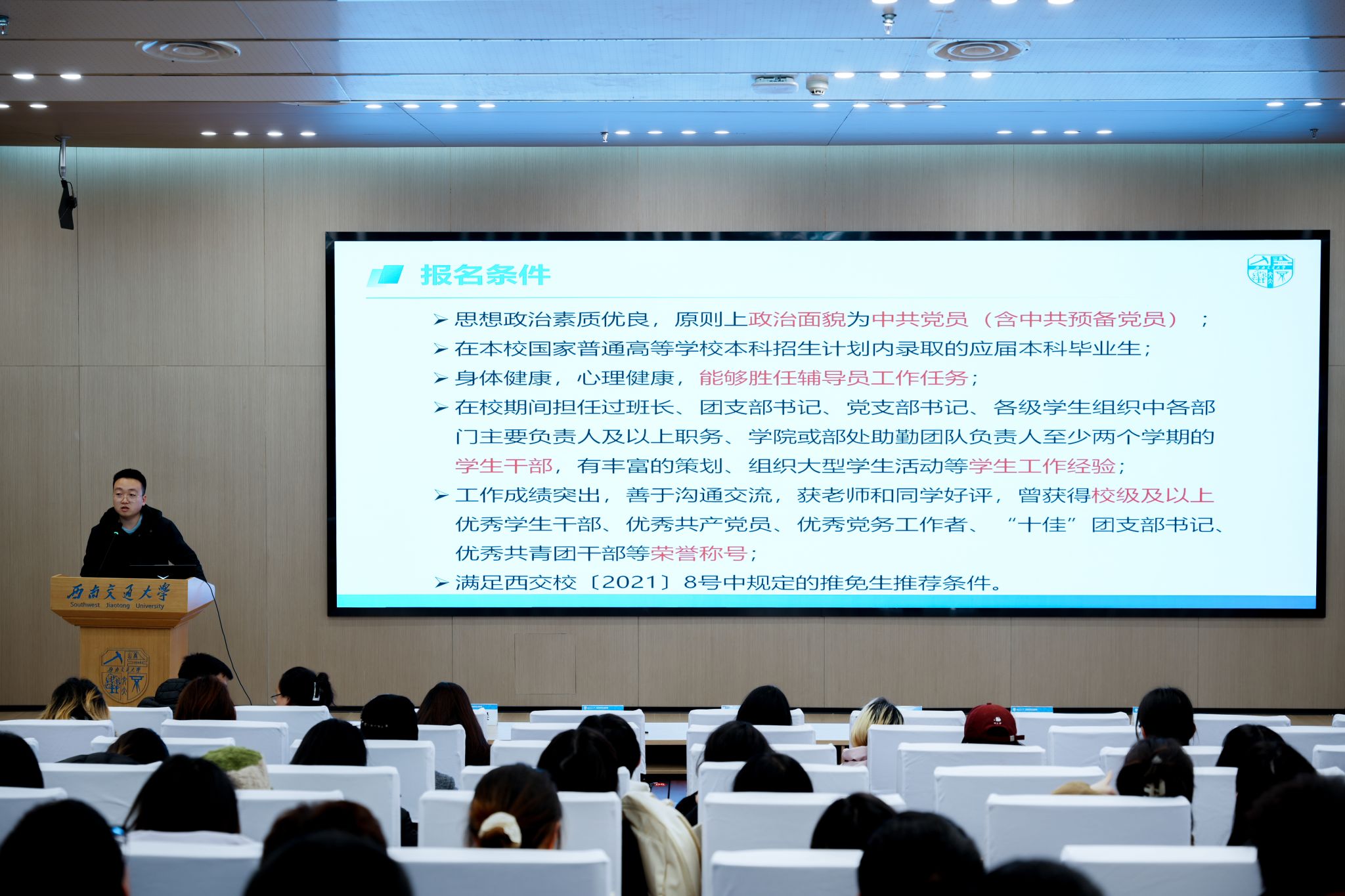 学思讲坛暨本科2022级职业规划指导会在图书馆二号报告厅顺利举行。本次活动由学院学生工作组和“学思”辅导员工作室联合承办,学院团委书记杨颖增老师及2022级全体本科生参会,本科生2022级辅导员潘星宇老师主持会议。