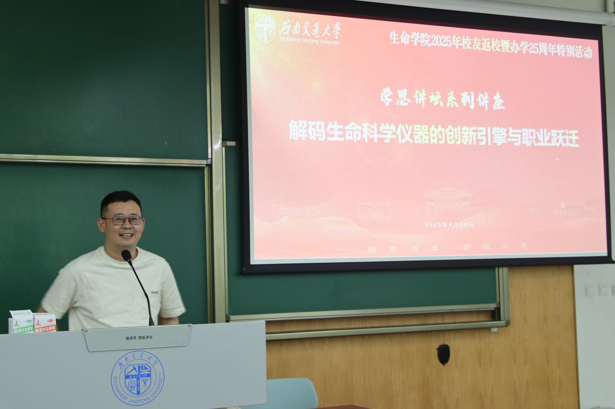 办学25周年特别活动安排,4月28日下午,《解码生命科学仪器的创新引擎与职业跃迁》主题分享于犀浦校区X4158举行。成都雄毅科技有限公司董事长何健雄、总经理宋利平、副总经理贾文武、行政经理叶玉凤、微密圈