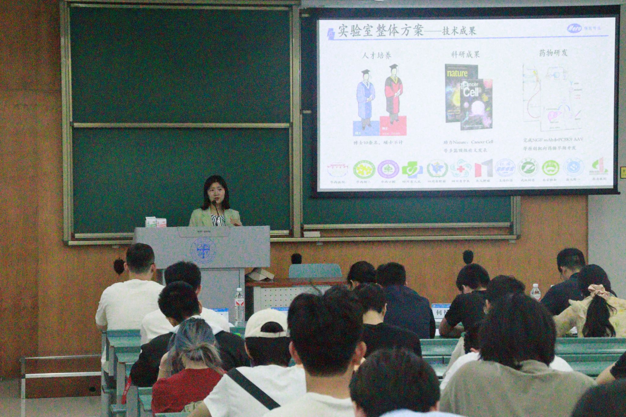 宋利平总经理对成都雄毅科技有限公司进行全方位介绍。她从公司简介出发,展示主要代理产品、装机案例、实验室整体方案、成果转化、技术服务以及团队建设和人才培养等内容,以企业发展激励学生们奋发进取,拓宽专业视野,为其在生命科学仪器领域探索创新提供多元思路。