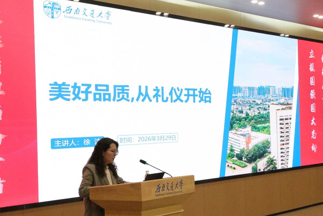 2025-2026学年青年马克思主义者培养工程培训在犀浦校区图书馆一号报告厅举办,学院特邀学工部徐洁老师作《美好气质,从礼仪开始》主题讲座。学院团委书记杨颖增、学院团委老师及120余名青马学员参加本次活动。
