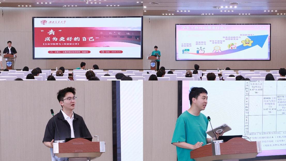 2025-2026学年“青马工程”优秀朋辈经验分享会在犀浦校区图书馆二号报告厅举行。交通运输与物流学院2022级张昊洋同学、电气工程学院2023级江胡同学受邀分享经验。