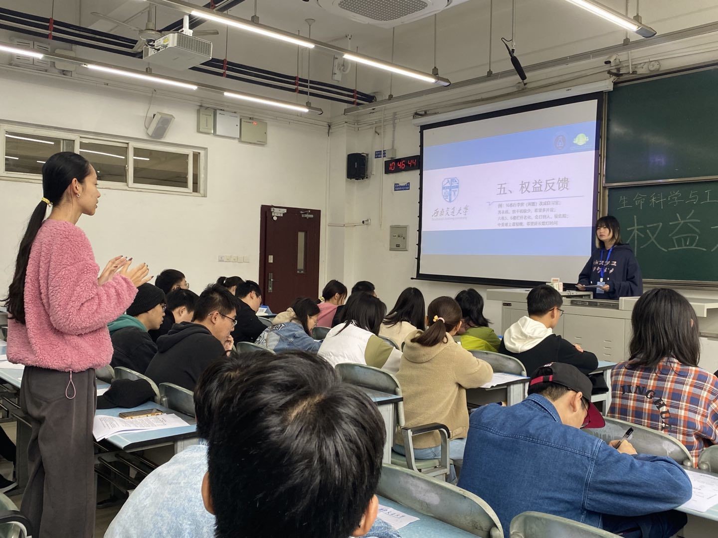 最后,各班级权益委员填写权益反馈表上交。会议指出各班级权益委员应肩负的责任,体现了学院对学生权益工作的重视,形成“院、班”良性互动。至此本次大会圆满结束!