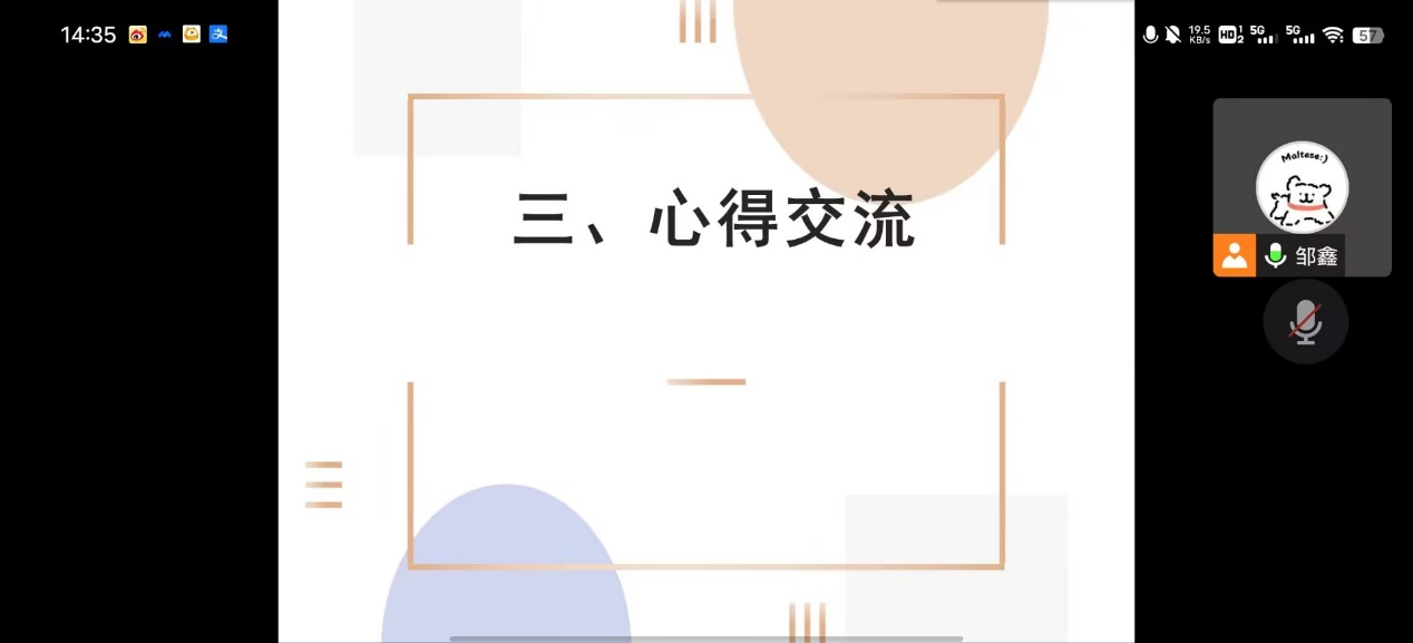 随后,同学们积极进行心得交流。大家各抒己见,从不同角度抒发了对党的拥护与热爱,交流了自己一学期以来在学习、生活、社团活动等方面的感受与体会。