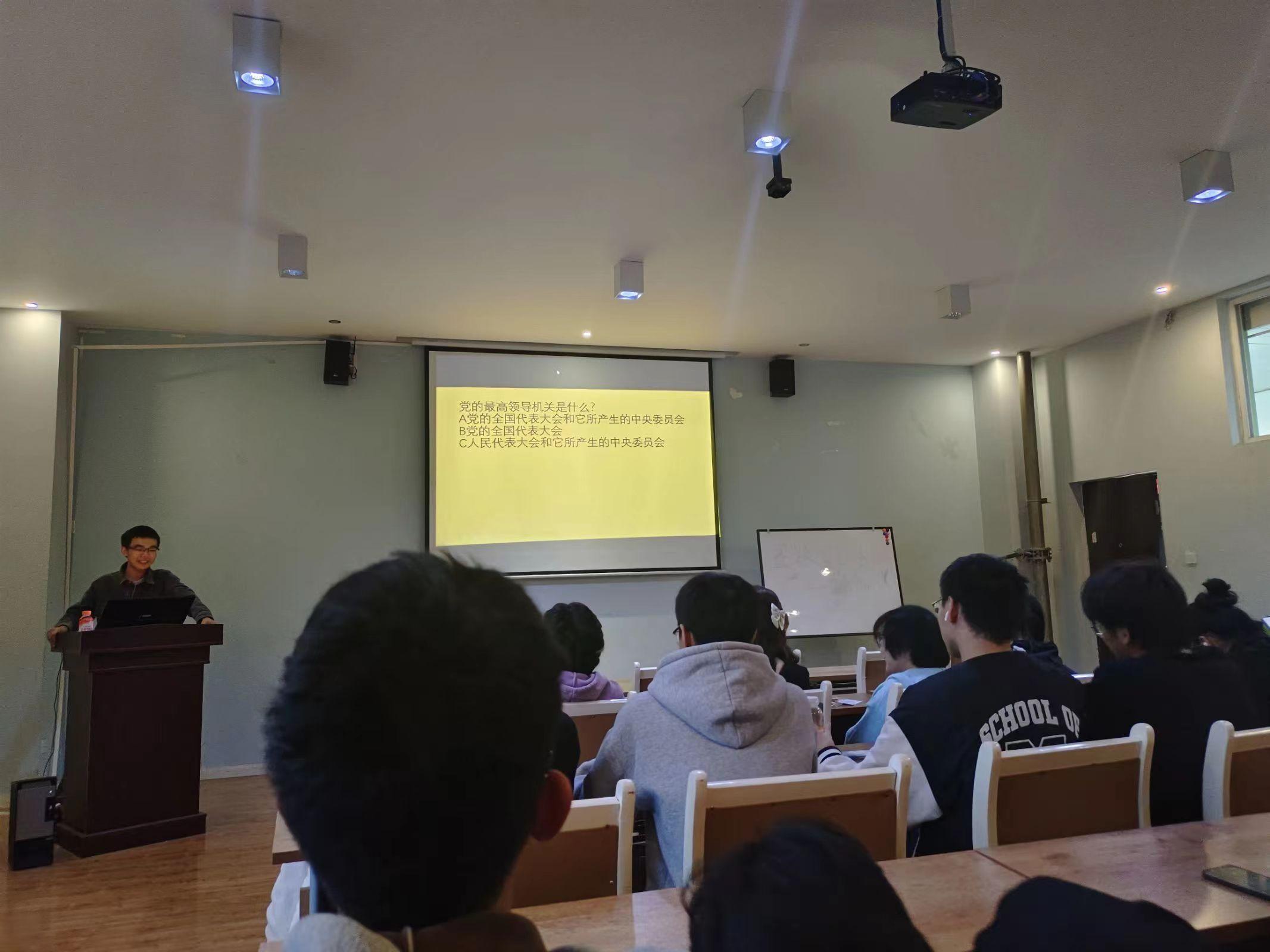 会前,制药三班团支书向参会的同学们本次介绍了本次活动的意义:中国共产党是中国特色社会主义的领导核心,当代大学生应紧跟时代浪潮,全方位均衡发展。