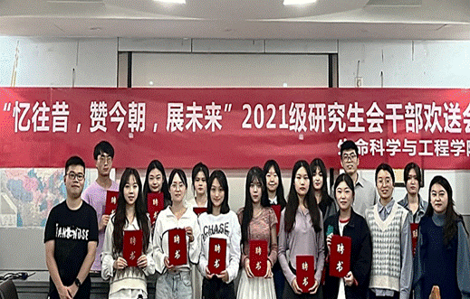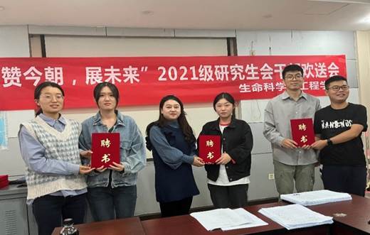 紧接着杨颖增、兰卓和饶欢老师为第八届研究生会各部门负责人颁发聘书,并与第八届研究生会全体成员合影留念。