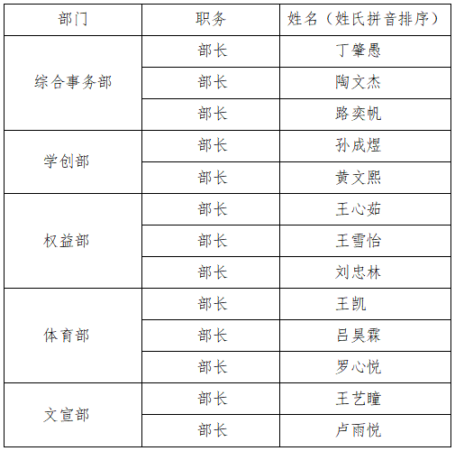学生发展中心2023-2024学年部门负责人选拔结果公示