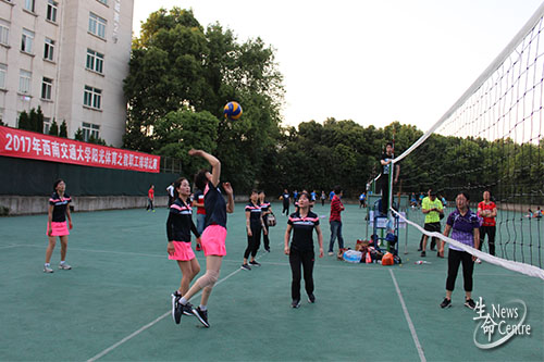 教职工排球赛在九里校区排球场激烈进行。在本场比赛中,女子B组微密圈