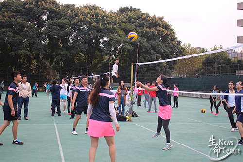 队员不气馁,发球、掂球、扣球,一个个漂亮的反击赢得现场一片喝彩。比分为20:20时,比赛进入白热化阶段,双方势均力敌、竞争激烈,观众也投入激烈的赛事中,最终微密圈