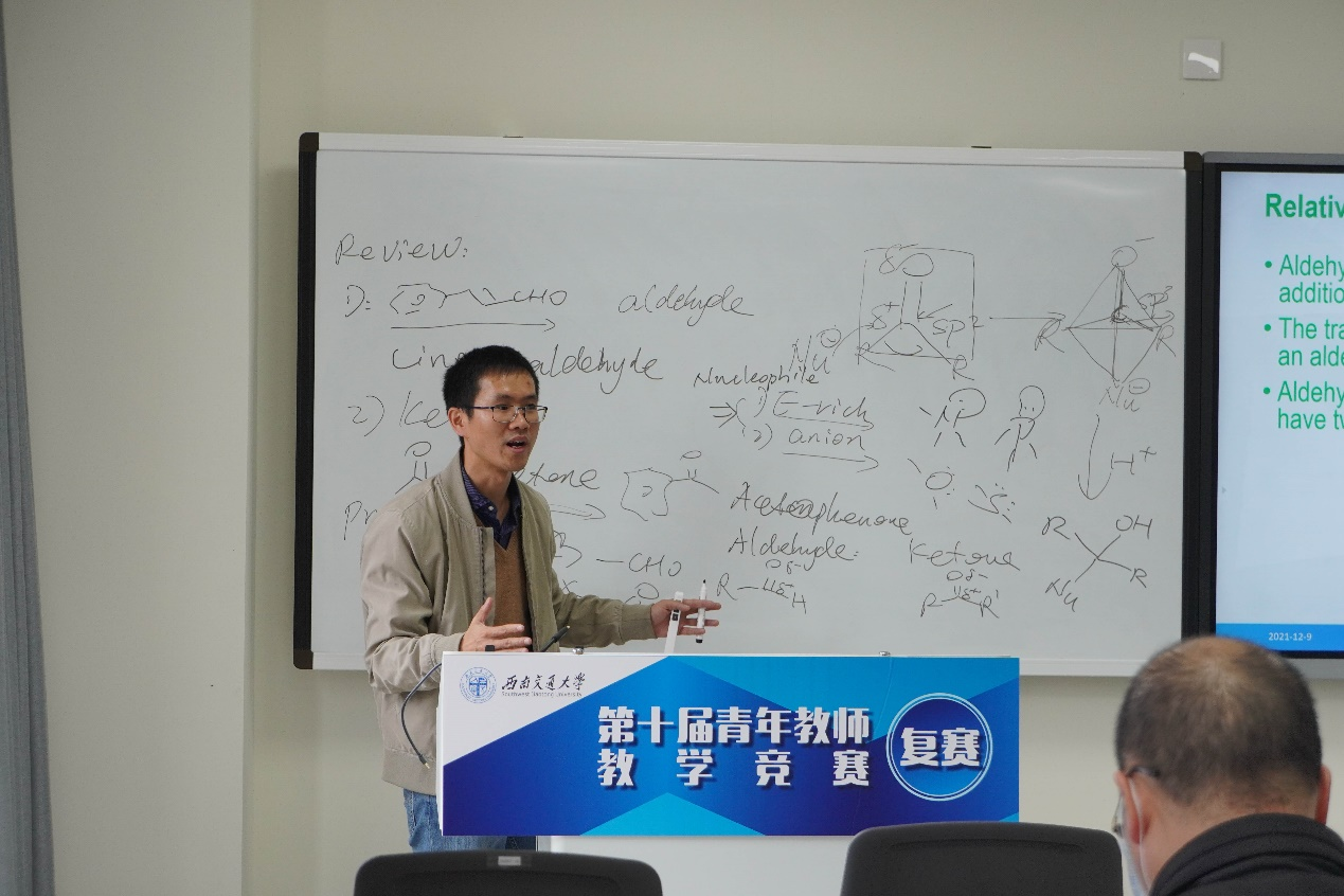 入围复赛的7位老师着装规范,精神饱满充沛,教态自然大方。通过生动的双语讲述、丰富的肢体表现,并运用计算机等教学辅助设备,模拟真实课堂,深入浅出,切合实际教学要求,有层次、重点地教授专业知识。各参赛教师结合各自学科特点,积极探索,大胆创新,运用多种教学手段。课堂上,彰显出课堂改革的效果,以学生自主学习为原则,以师生互动、生生互动为导向,使学生在教学过程中的主体地位得到充分发挥,让课堂充满生机与活力。