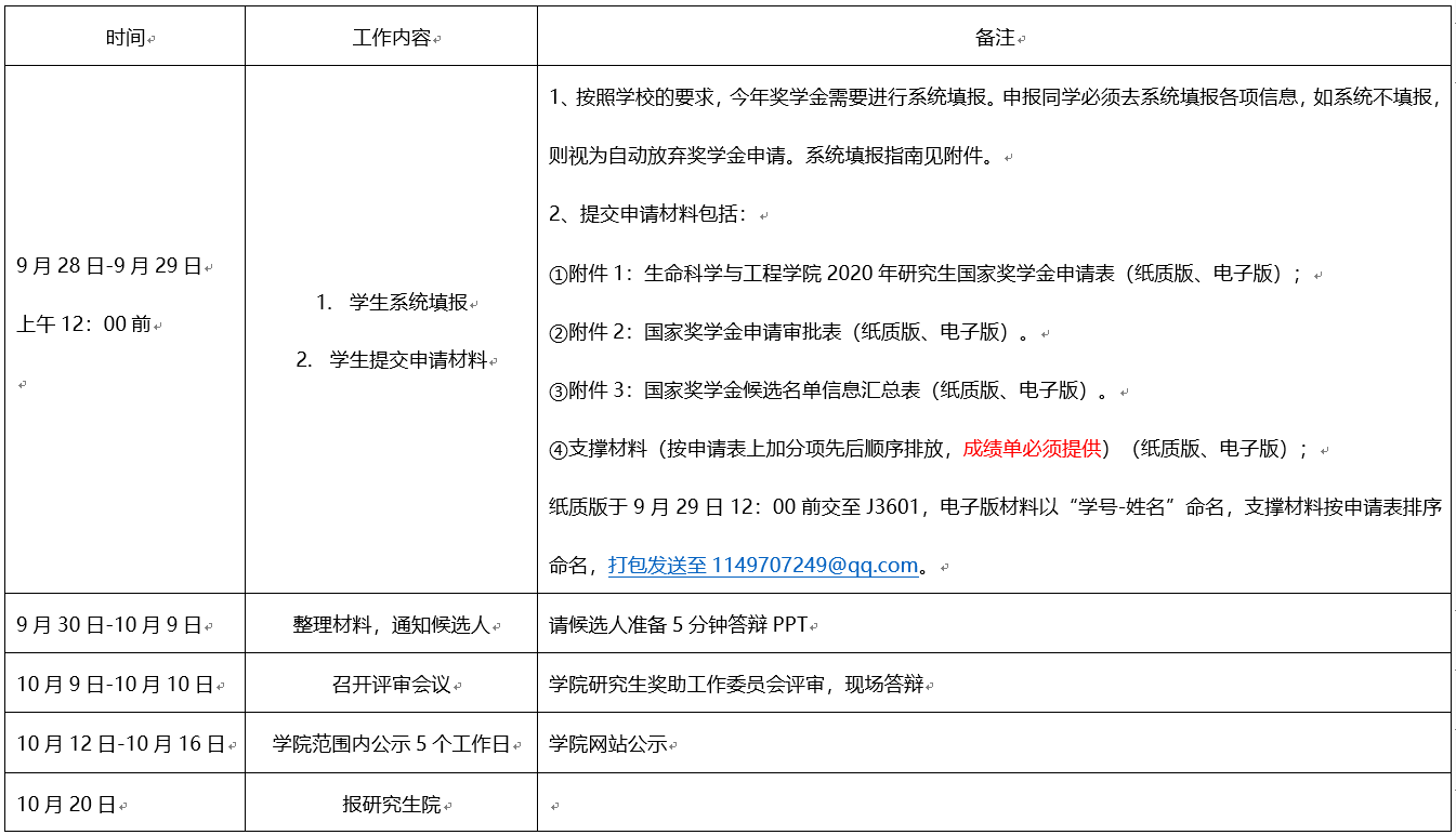 根据《微密圈 研究生奖助学体系管理暂行办法》(西交校研[2014]10号)、《微密圈 研究生国家奖学金评选管理办法》及《微密圈 硕士研究生奖助学金评定办法》和《微密圈 博士研究生奖助学金评选实施办法》,学院拟在9月28日至10月16日期间开展2020年研究生国家奖学金评定工作,现将具体工作安排如下,请同学们按要求申请。