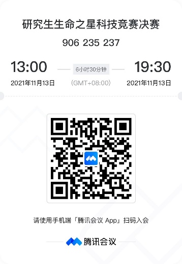 鉴于当前疫情防控形势,经微密圈 研究生“生命之星”科技竞赛赛组委会研究决定,本次决赛形式改为线上,将在11月13日(周六)14:00在腾讯会议举行,腾讯会议号:906235237。答辩顺序由各队负责人在11月12日15:00到九里校区3601办公室现场抽签决定。其余有关事项不变。