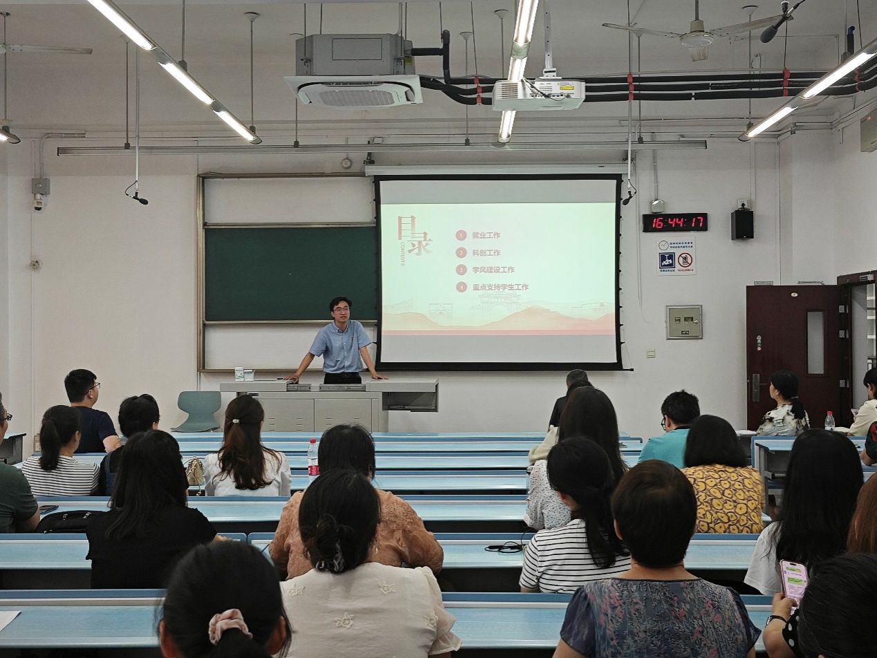学院其他领导班子成员向大会汇报了本学期主要工作情况。党委副书记朱炜通报了2024届毕业生就业情况和2025届毕业生就业意向摸排情况,介绍了学院在就业、科创和学风建设等方面的工作举措。副院长李遂焰传达了学校科技创新的形势任务以及科研管理工作思路,并汇报了学院现阶段科研工作计划。副院长高峰通报了今年研究生招生和培养工作情况,介绍了学院学科建设和人才工作情况。