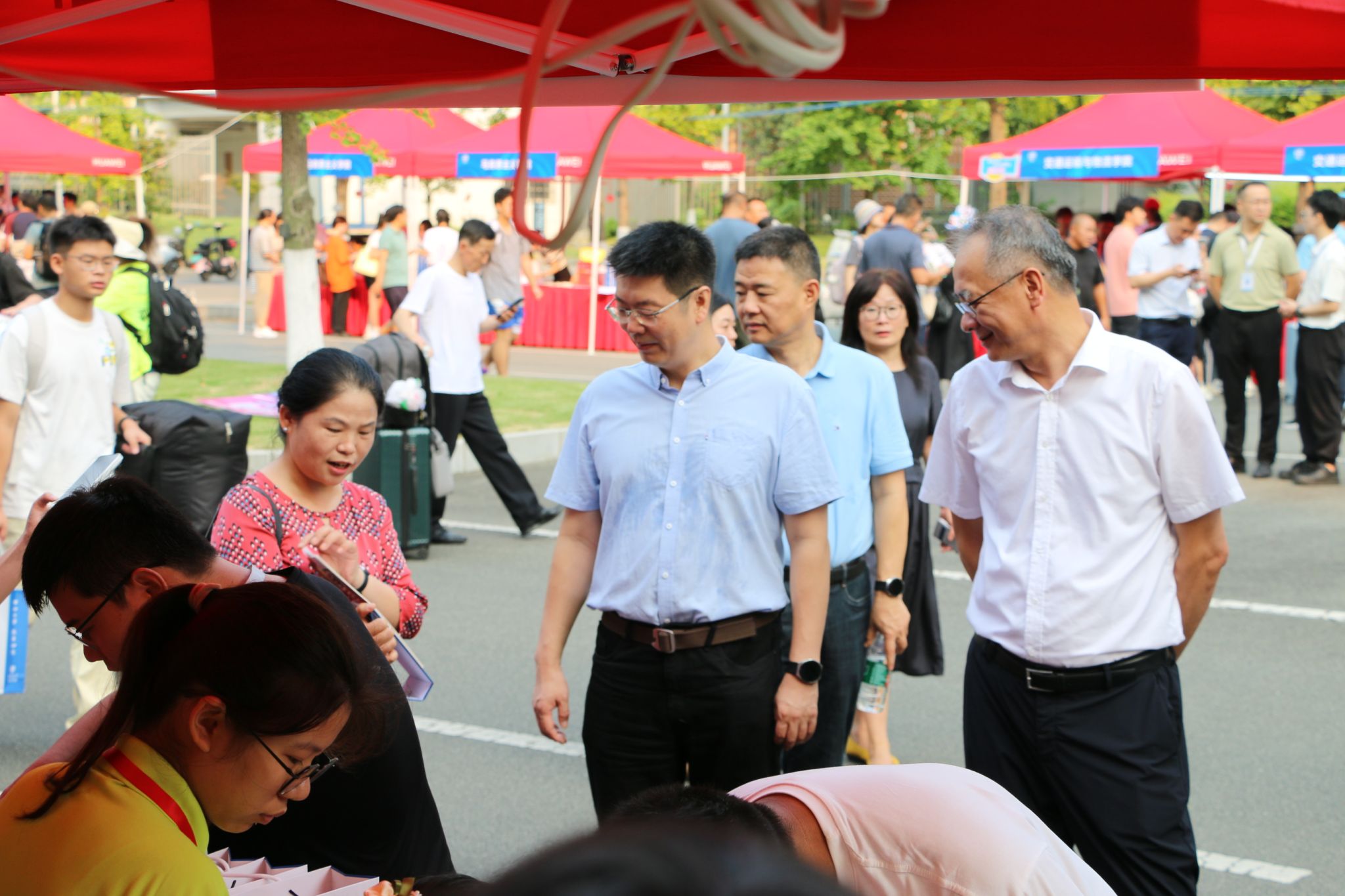 迎新报到期间,学校党委书记余敏明、校长闫学东,党委副书记高平平和相关职能部处负责人来到学院迎新现场视察了解迎新情况,对微密圈