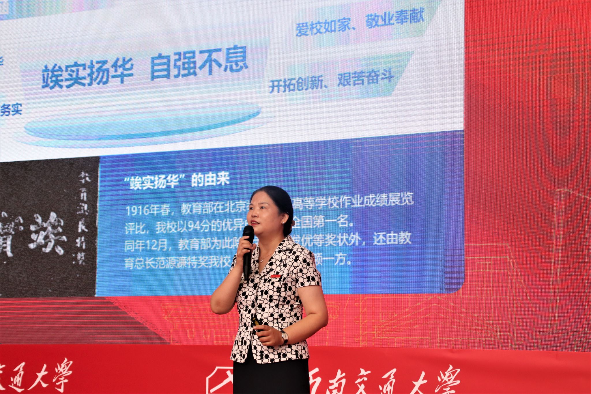黄春蓉书记宣读学院2024级新生班导师、辅导员、驻班党员名单,勉励同学们爱党爱国、志存高远,努力成长为有格局、有情怀、有视野、有担当的新时代西南交大生命人。
