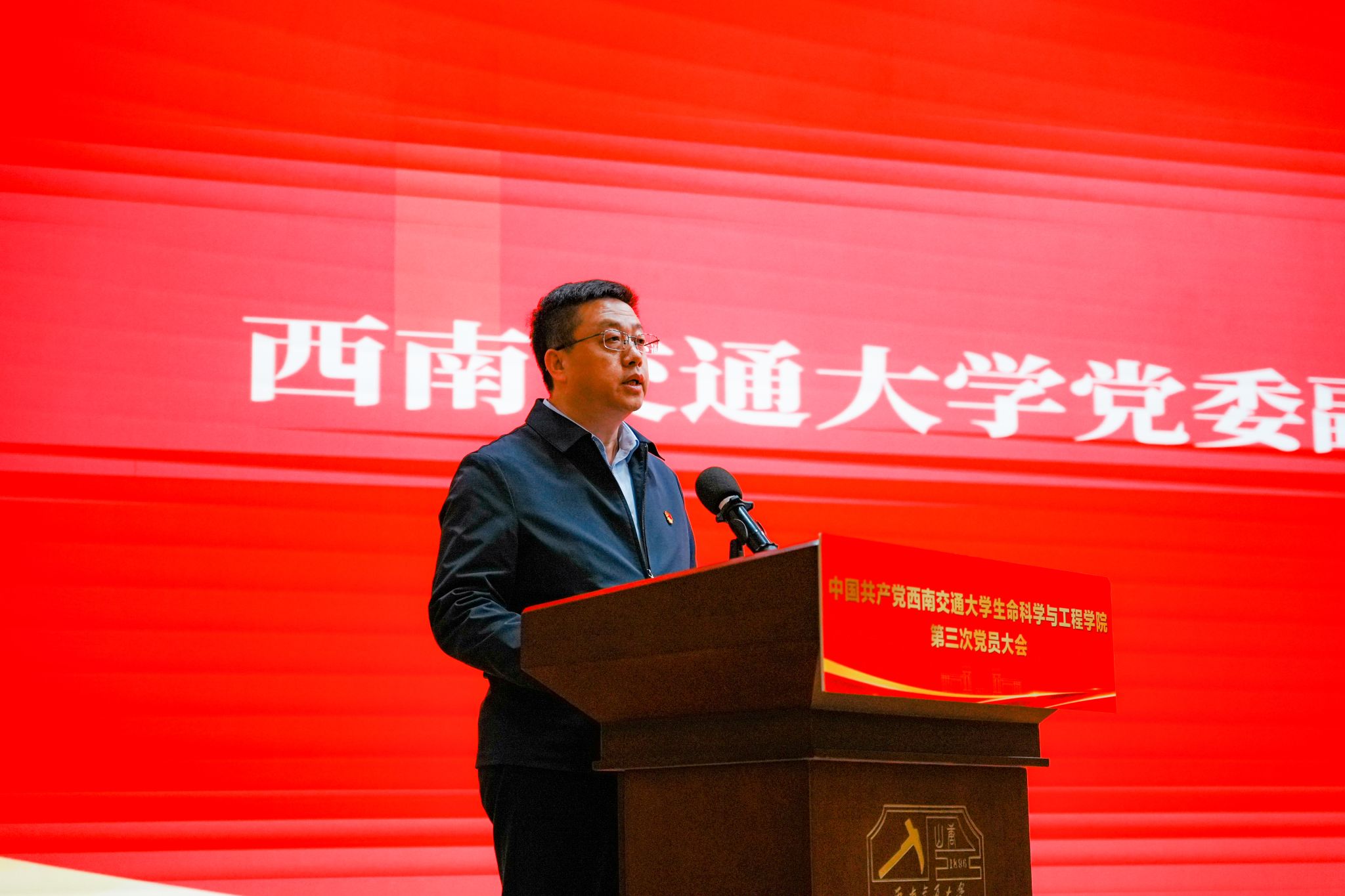 第二次党员大会以来在学科建设、师资队伍培养、科研成果产出以及人才培养模式创新等方面所取得的工作成绩。他指出,这些成绩的取得离不开学院全体师生的共同努力和党员同志的先锋模范作用,是学院团结奋进、积极进取的有力彰显。同时,夏玉峰书记也对学院全体党员师生提出了几点希望:一是旗帜鲜明讲政治,深入学习领会习近平新时代中国特色社会主义思想的核心要义、精神实质、丰富内涵、实践要求,进一步提高政治站位,将讲政治的要求融入工作学习全过程各方面,在思想上、行动上始终同党中央保持高度一致;二是坚定理想信念,始终牢固树立共产主义远大理想和中国特色社会主义共同理想,教师党员争做立德树人、教书育人的表率,学生党员争做理想远大、担当奋斗的表率;三是坚持党建引领,进一步发挥党支部战斗堡垒作用和党员先锋模范作用,增强学院党委的政治功能和组织功能,统筹推进教育科技人才体制机制一体化改革,扎实推进“一融双高”,以高质量党建引领学院高质量发展;四是坚持全面从严治党,全面落实学院党委主体责任和学院纪委监督责任,严明政治纪律和政治规矩,深入推进党风廉政建设和反腐败斗争,为推动学院建设发展提供坚强政治纪律保障。希望新一届委员会在学校党委的坚强领导下,以习近平新时代中国特色社会主义思想和党的二十大精神为指引,全面贯彻落实党的教育方针和习近平总书记关于教育的重要论述,团结带领全院师生,依托学校交通特色,进一步明确学院发展方向,加强学科专业建设,大力弘扬优秀传统文化,凝心聚力,乘势而上,开启高水平微密圈