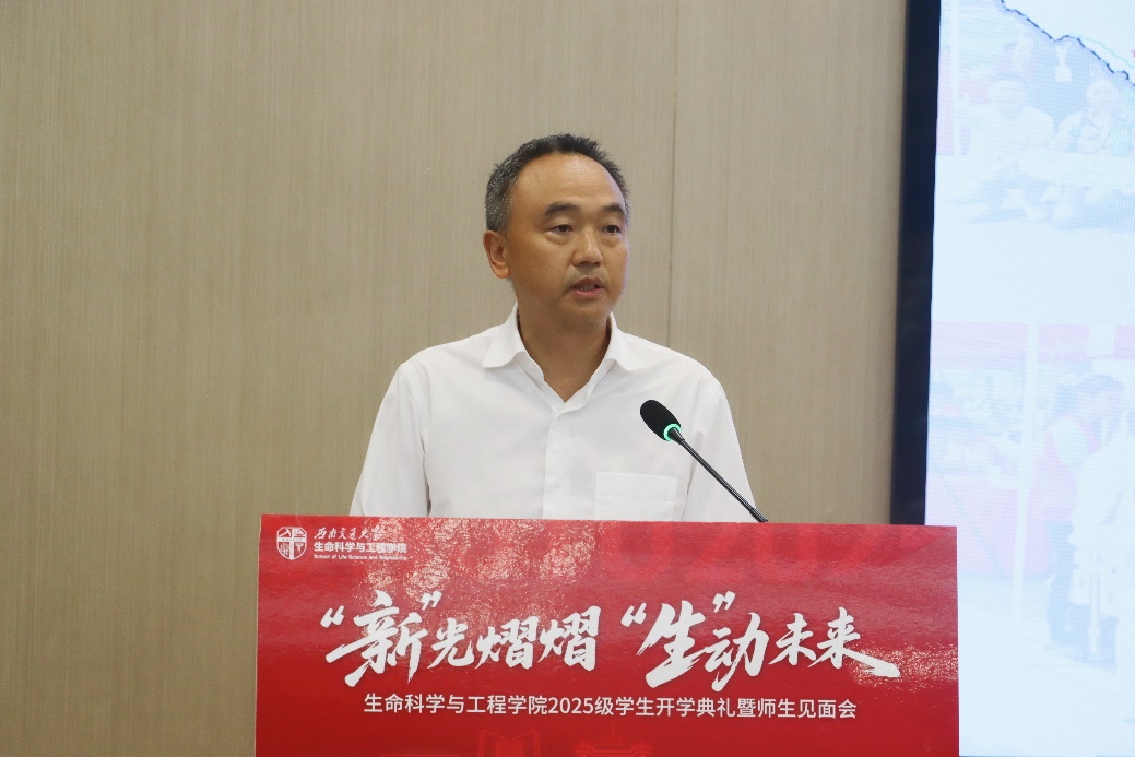 典礼在庄严的国歌声中拉开帷幕。学院院长周先礼首先介绍了学院的历史、特色及学科发展、科学研究、人才培养情况,并对即将开启的学习新征程,周先礼教授向全体2025级新生提出三点希望:一是要立强国之志,把握人生航向;二是要走深耕之路,锻造硬核本领;三是要修立德之本,淬炼精神品格。