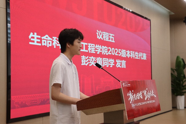 本科生新生代表彭奕童、研究生新生代表董芯竹在发言中向学校、师长、父母的培养表示衷心感谢。站在新起点、迎接新挑战、开启新征程,他们将和全体新同学一道,弘扬“竢实扬华,自强不息”的交大精神,将个人的科研理想融入国家发展的需求,用扎实的学识、创新的成果,为健康中国建设和人类生命健康事业贡献交大生命人的力量。
