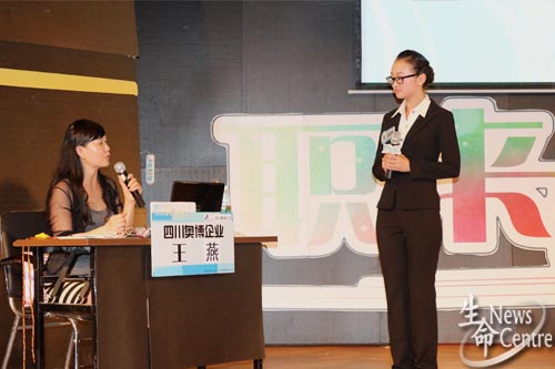 生物信息专业的刘晓敏,以其灵活敏锐的思维,极强的办事能力和表达能力,出色的现场发挥,以及其中表现出极强的学习和工作能力博得现场职场达人一致好评。继3号刘晓敏之后,6号选手,微密圈