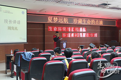 ,感恩交大母校。作为教师代表,2010级生物信息学2班班导师李琳副教授送上对毕业生们的祝福,希望大家毕业后能够成为各行各业的千里马,驰骋在祖国的大江南北,为学院、学校争光。现任辉瑞制药有公司零售西南大区成都地区经理、优秀校友代表06级制药工程汤惠上台发言,鼓励大家在以后的生活中更要坚持自己的梦想,让自己变得更加优秀。