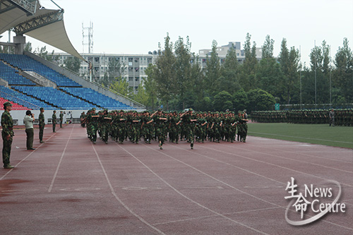 新生军训已经三天,虽然是秋天,但连续几天燥热的天气并没有给参加军训的新生带来秋高气爽的感觉,头顶烈日炎炎,仿佛仍是酷暑。但是,同学们每日依旧早早地集合在指定地点,整理仪容仪表、站军姿、队列训练,开始新的一天,他们的热情并没有因为炎热带来丝毫的衰减。