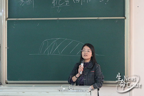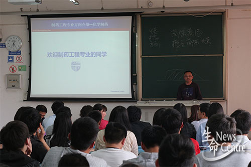 大会第一阶段,由各位老师向同学们介绍制药工程专业不同方向的学习内容并解析其就业形势。首先上台的是马超英老师,他从制药工程专业化学、生物、中药三个方向的专业特色、主干学科、专业核心,就业方向以及医药人才市场的需求量等方面进行了讲解,重点分析了中药制药方向的发展前景和就业情况,鼓励同学们相信自己的专业并热爱它。