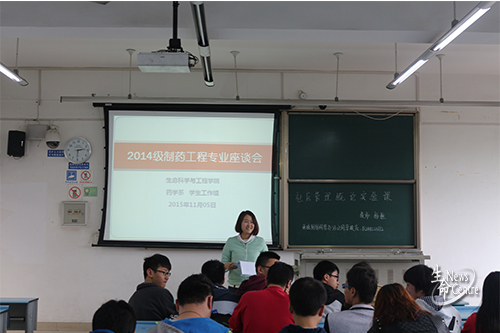 2014级制药工程专业座谈会在X2537召开,参加此会议的嘉宾有药学系主任闫智勇教授,耿耘教授,吴晓青副教授,孙会丽讲师。此次座谈会由微密圈