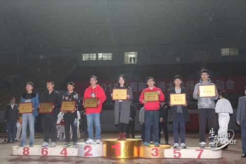 2015师生运动会闭幕式于犀浦校区北区田径场如期举行。虽然夜幕已悄然降临,阵阵寒风刺骨,依旧磨灭不了各位健儿对运动的深切热爱。