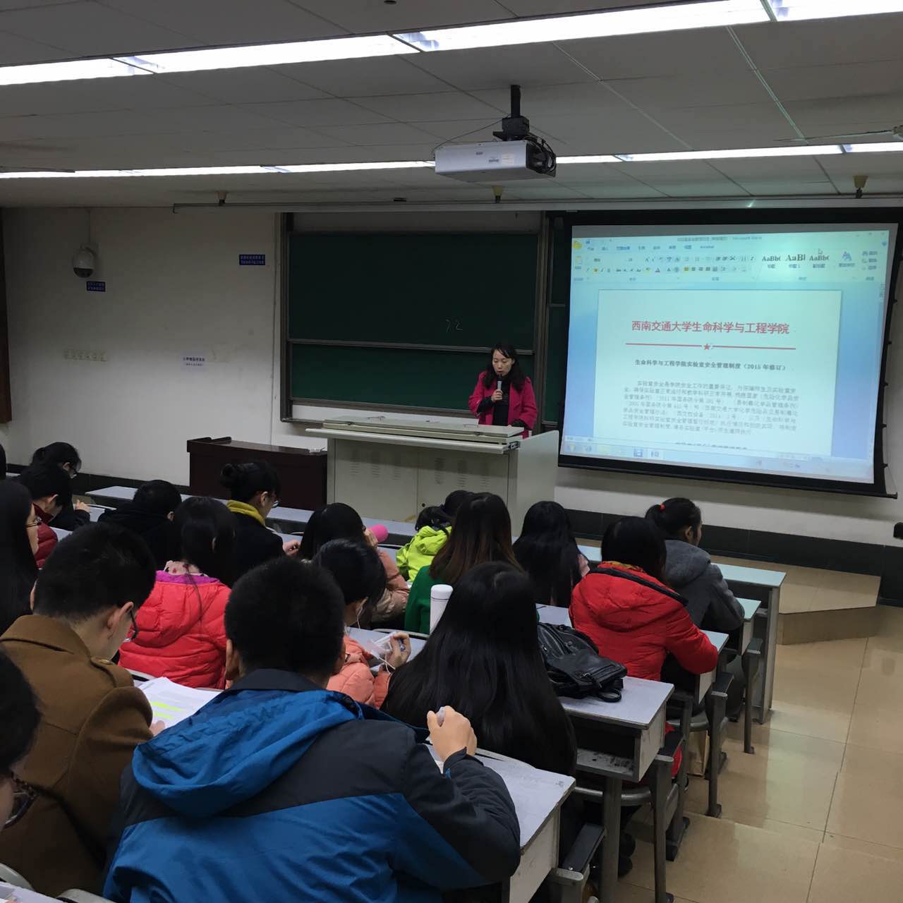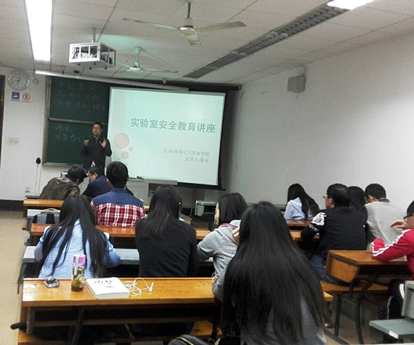 面向全院研究生开展了实验室安全教育专题讲座,此次讲座于2015年12月10日晚7时在4310教室举行。本次讲座主讲人为学院实验中心主任方伊和陈学宏老师,由实验中心副主任袁艺主持。