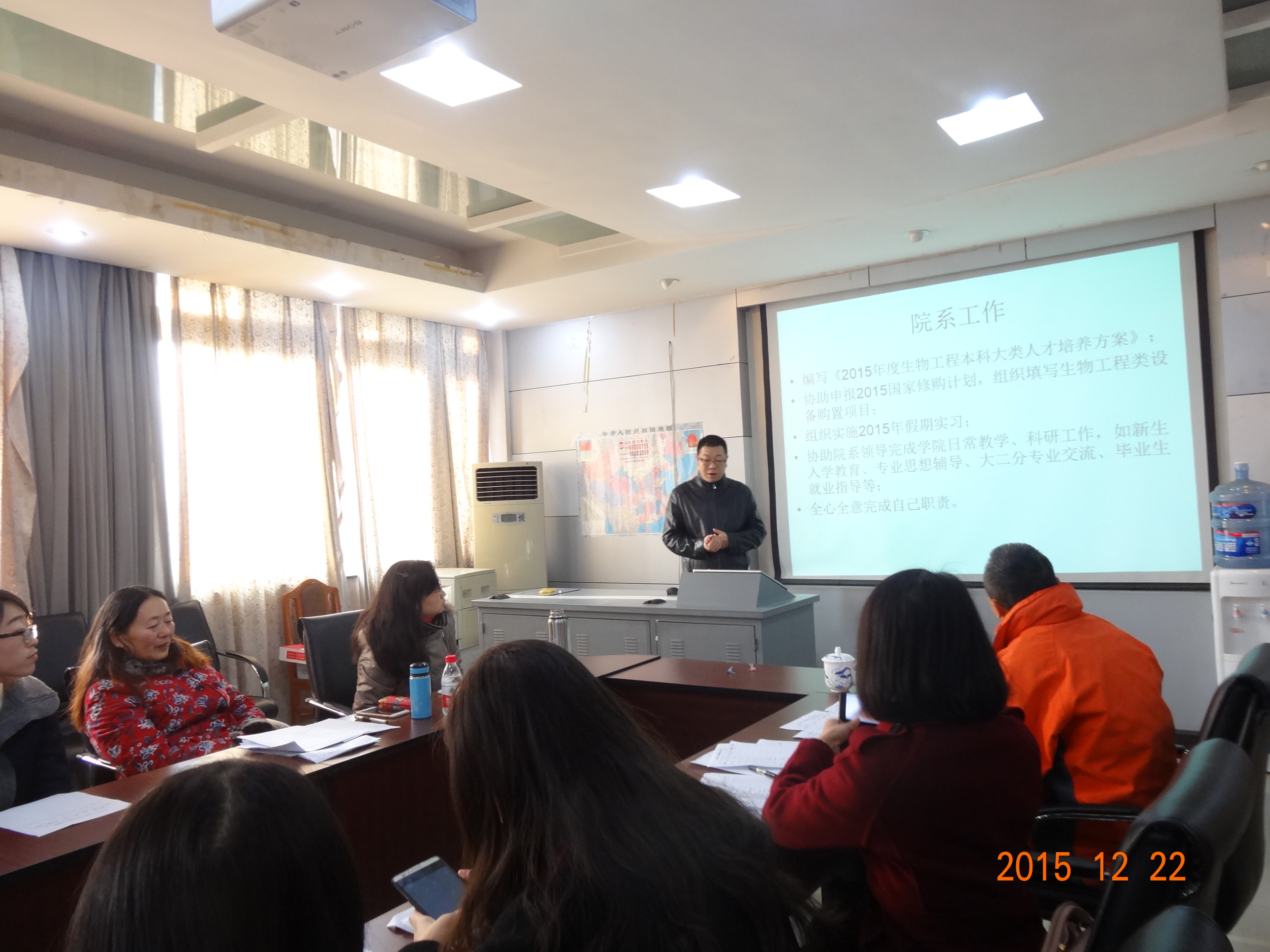按照学院2015年考核工作安排,12月22上午9:00,学院本年度管理岗位考核工作在九里校区3609会议室顺利进行。管理岗位考核工作组成员有:助理及以上党政班子成员、工会主席、办公室主任、系(中心)负责人、专业教师代表(抽签决定),院党委副书记罗妍妍主持。